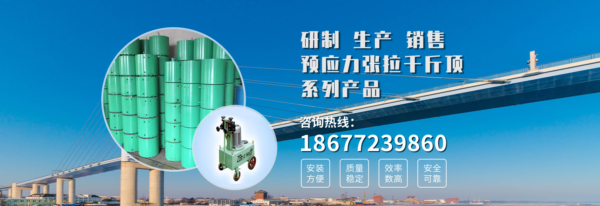 - 产品广泛应用于各种预应力混凝土结构、钢结构、运用于公路桥梁、铁路桥梁、高层建筑、水电工程、矿山…